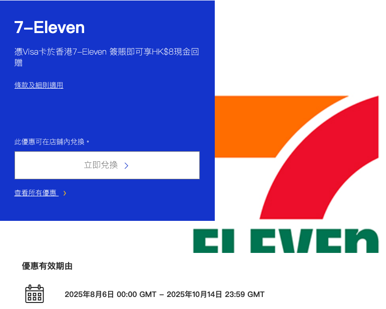 #7ElevenHK #Visa #7Eleven便利店 #便利店 #優惠