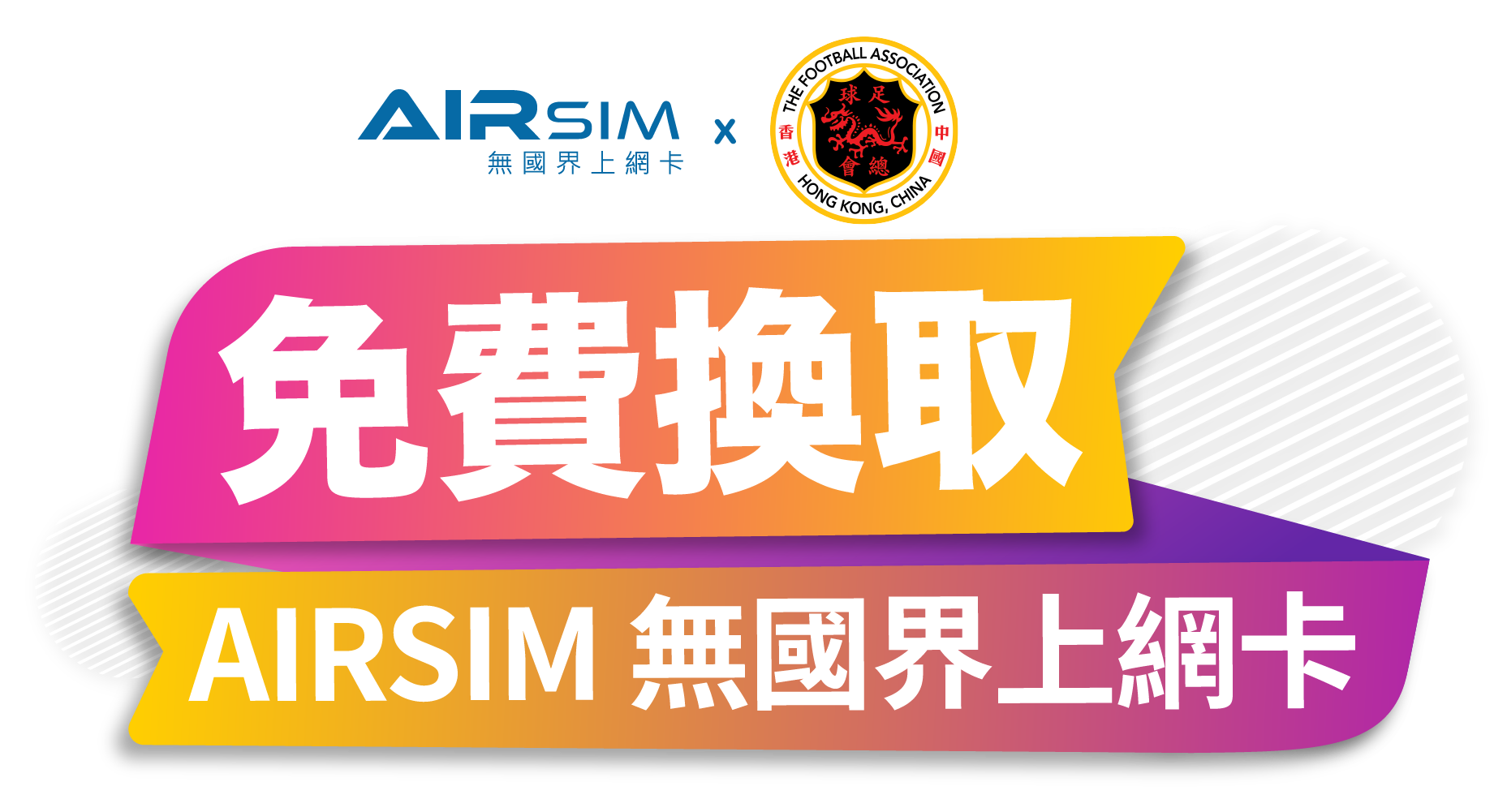 AIRSIM 與中國香港足球總會合作推出球迷優惠,免費提供內含 $20 儲值額的 AIRSIM 上網卡。