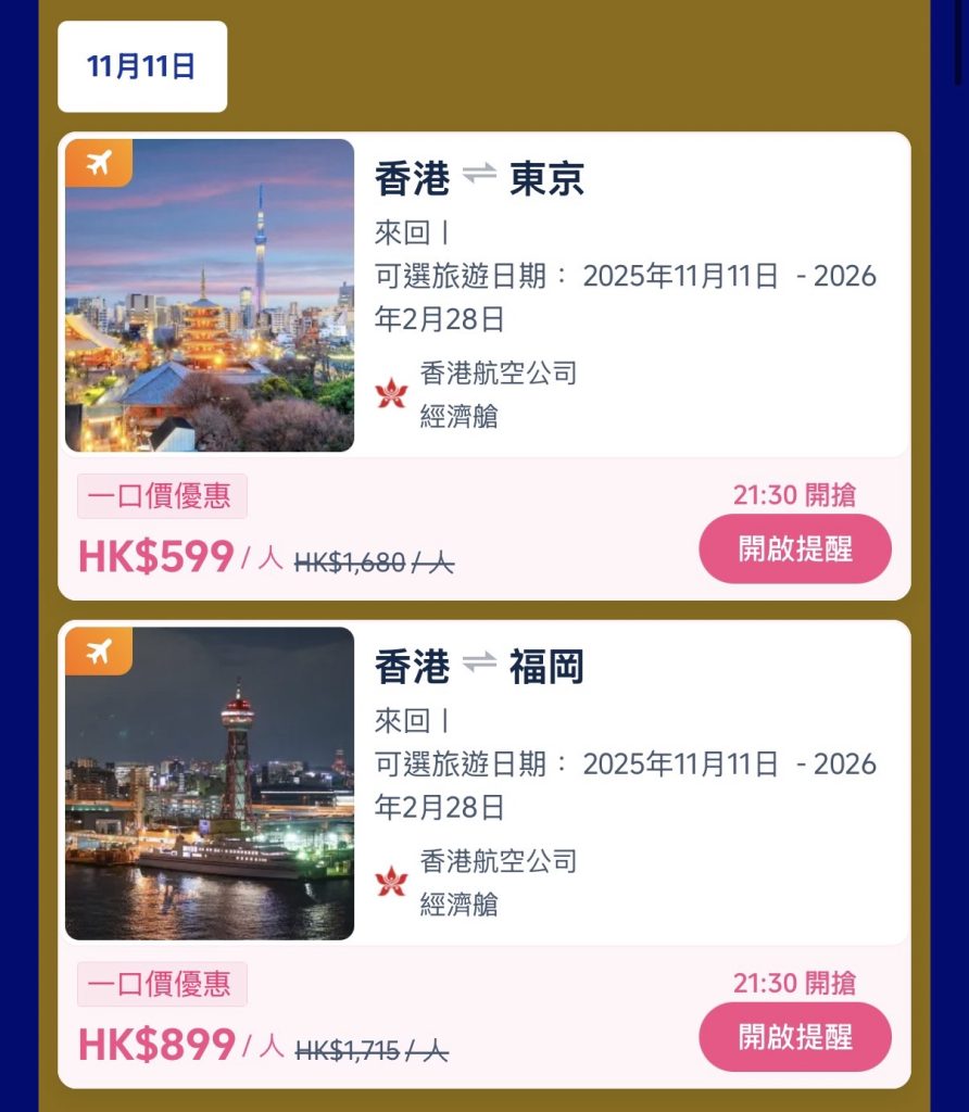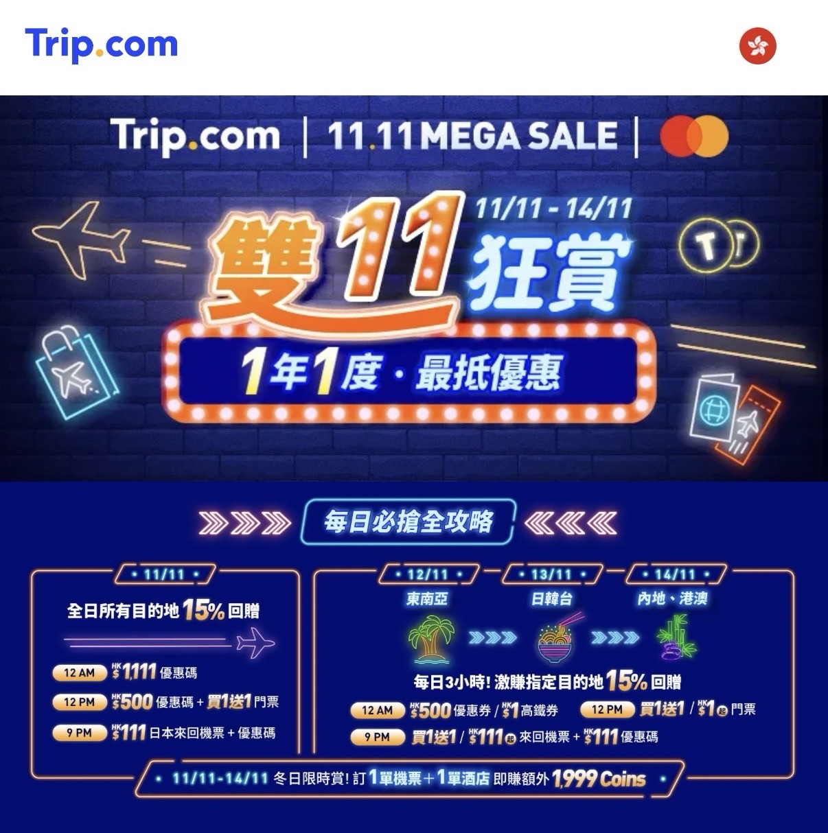 Trip.com 雙11狂賞機票優惠,整理給有需要的人參: