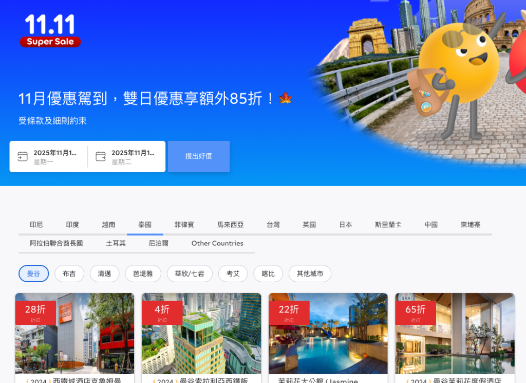 Agoda 而家進行緊「11.11超級大特賣」,有限時優惠。