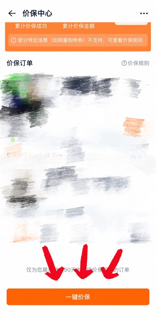 - 在價保中心頁面,點擊「一鍵價保」按鈕即可申請。