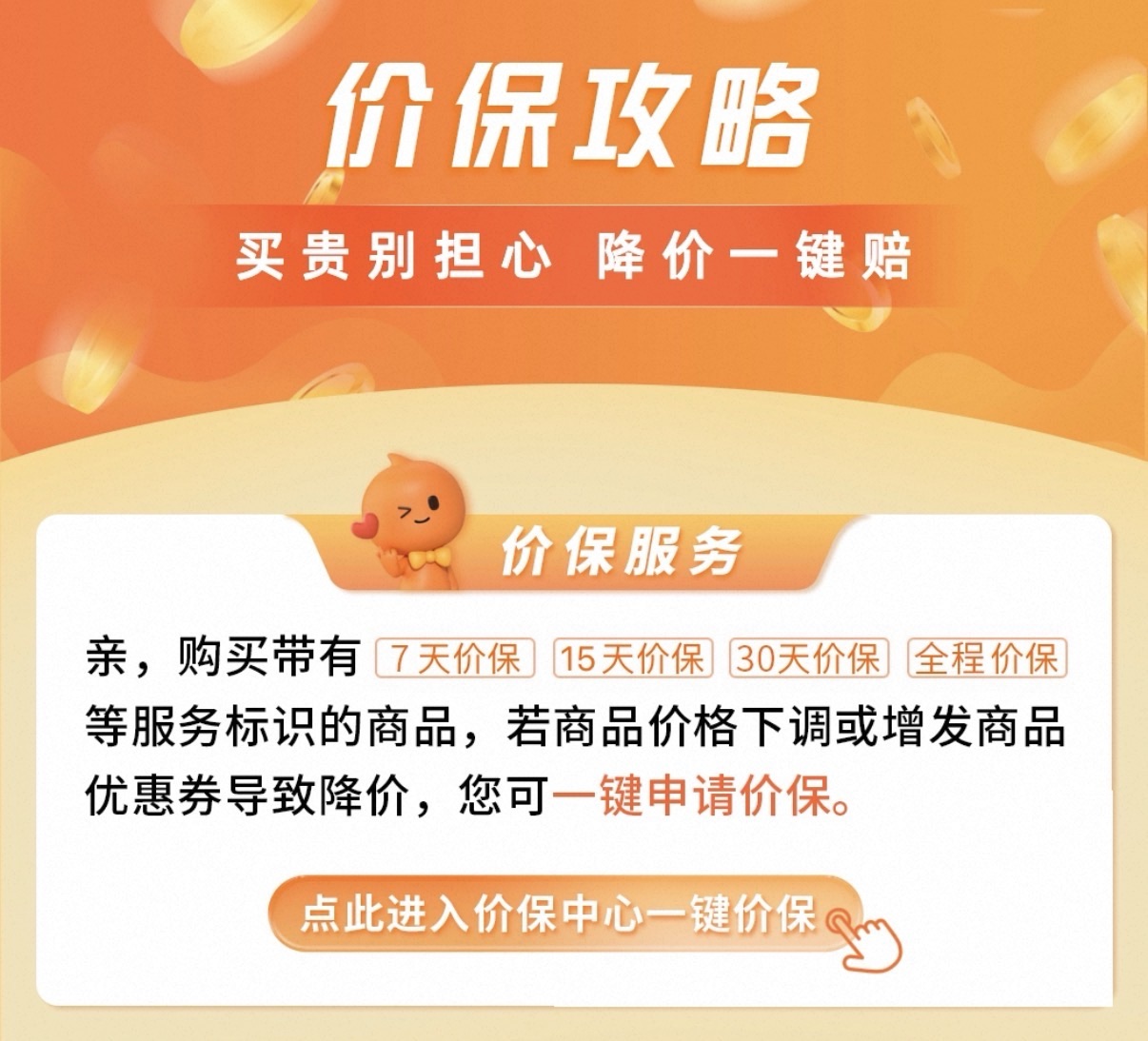 - 定義:: 在購物後,若商品價格下跌,淘寶將會退還差價給消費者。