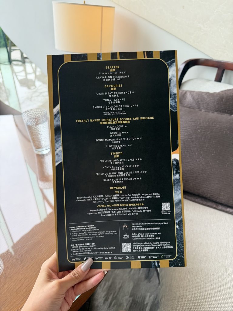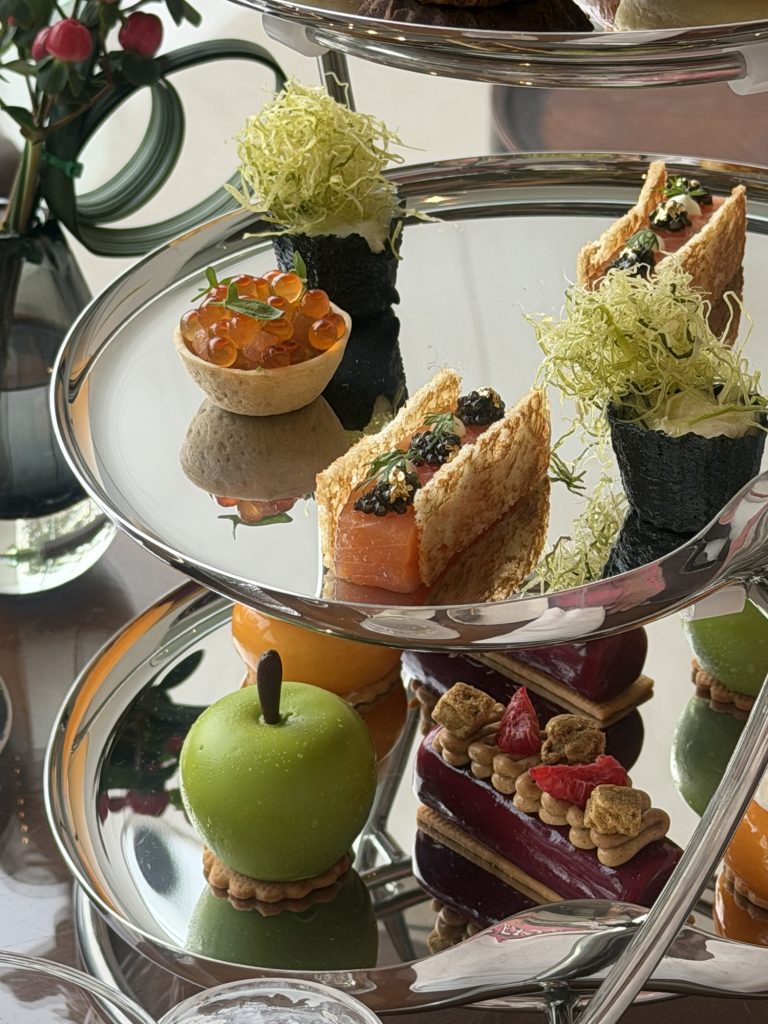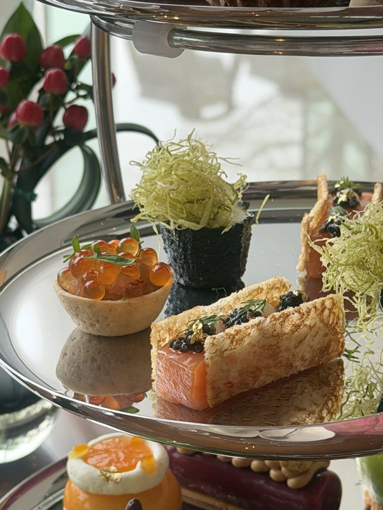 好抵食!✨亮點Prunier原盒頂級魚子醬,鹹鮮回甘。其他鹹甜點一樣精緻,甜點有心思,唔會好甜!特別鍾意青蘋果做型嘅法國白乳酪黑醋粟蛋糕,咬開蘋果造型嘅脆片裏便係香滑嘅乳酪同乳酪蛋糕,好想encore多一個蘋果👀!咸點我最鍾意煙三文魚迷你三文治,薄脆多士夾住肥美嘅煙三文魚,鹹香可口!