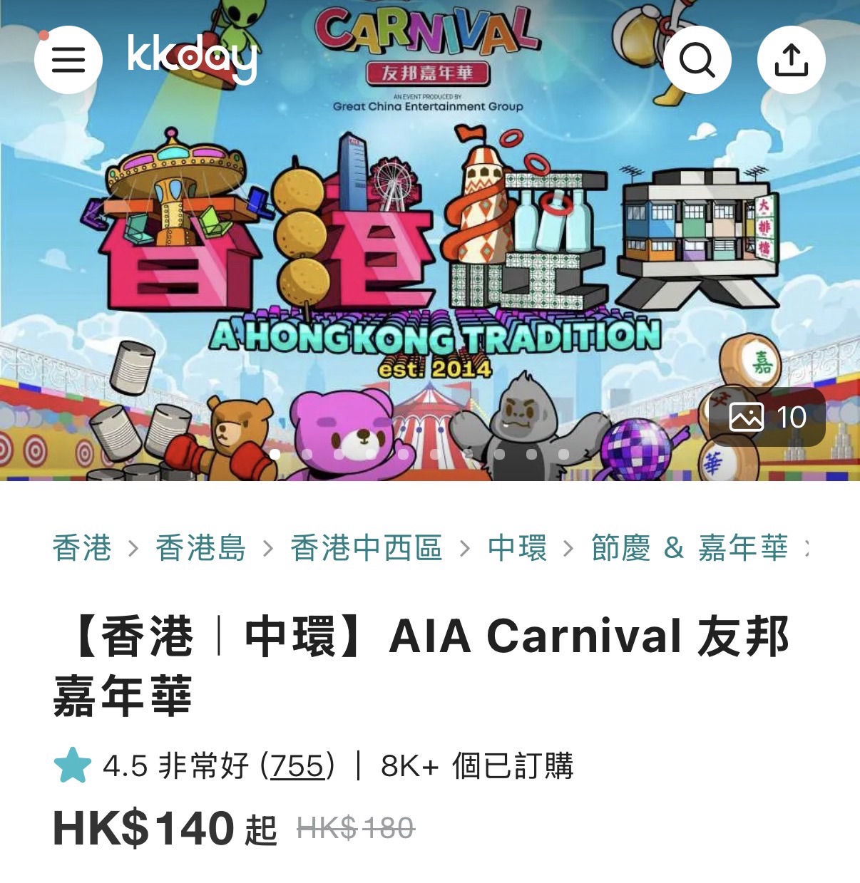 一年一度嘅AIA友邦嘉年華將於12月18日回歸中環海濱,KKday推出多款獨家早鳥套票,仲加碼送豐富禮品。