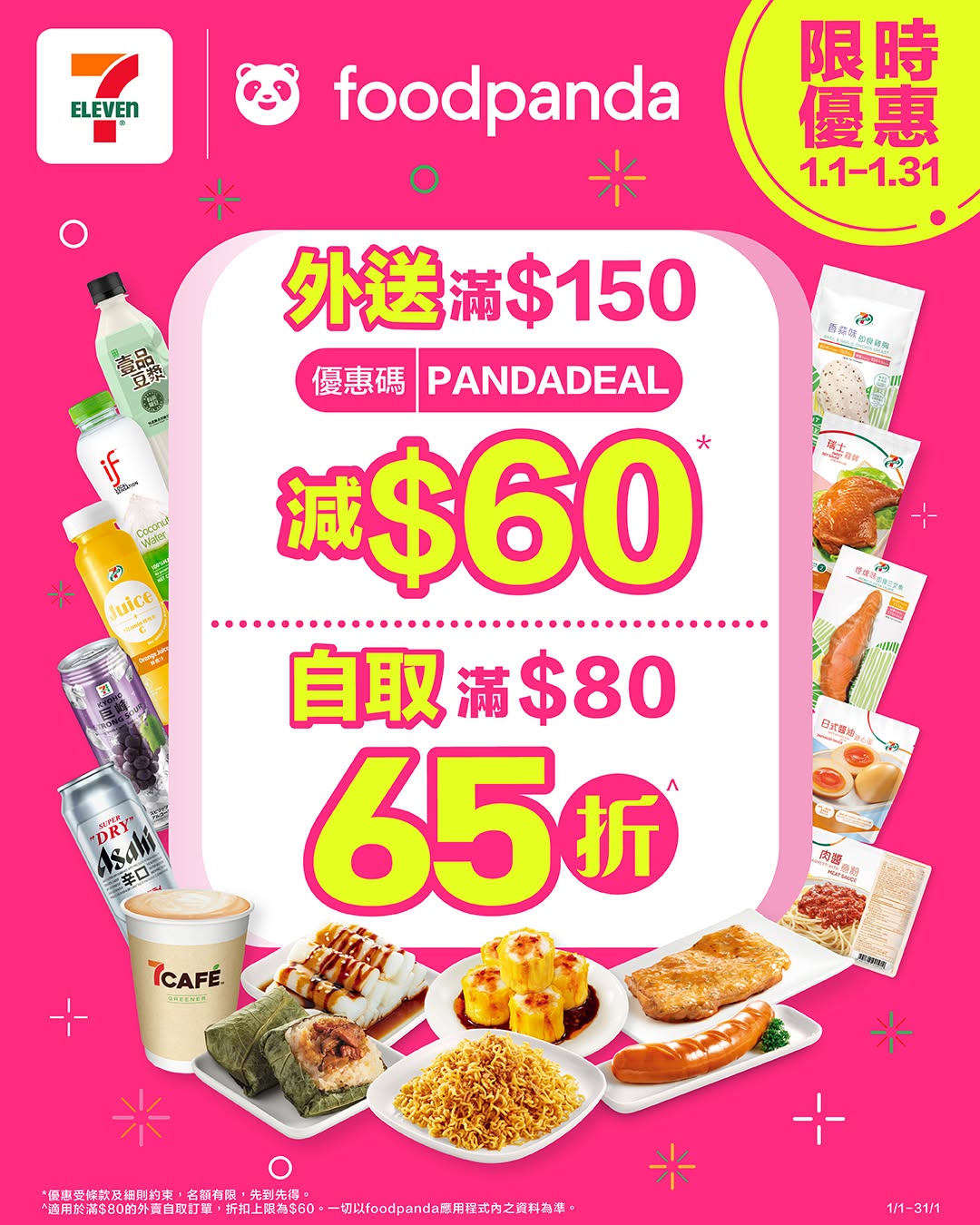 - 詳情: 於指定 7-Eleven 分店消費滿指定金額,即送 foodpanda $188 大利是。