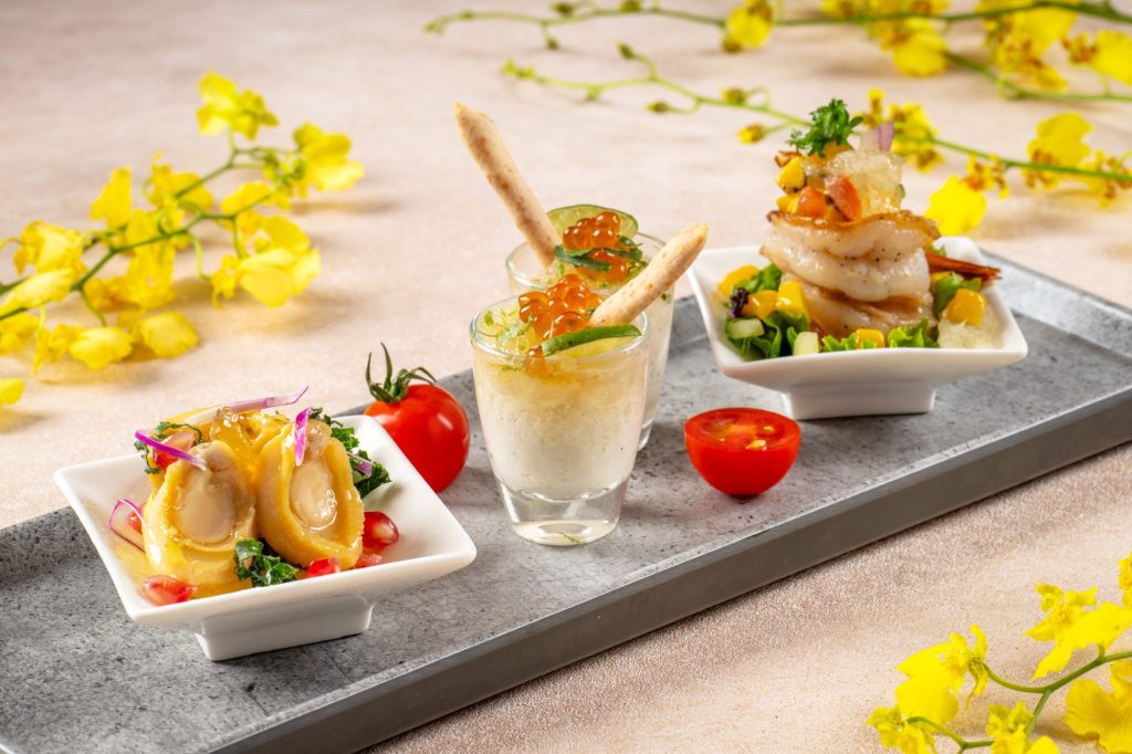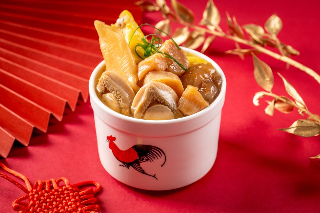 - 回本熱盤: 蒜蓉牛油焗鮮鮑魚 (每位一客)、鮑汁炆魚肚花膠雞鍋、手打鮮龍蝦汁帶子鮑魚闊條麵 。