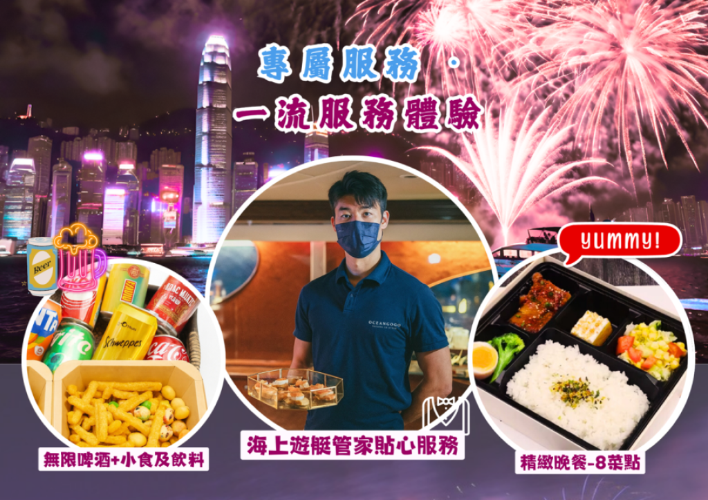- 賣點: 包船上零食及 無限暢飲 香檳、啤酒、汽水 。$600 幾蚊有酒飲有煙花睇,性價比極高。