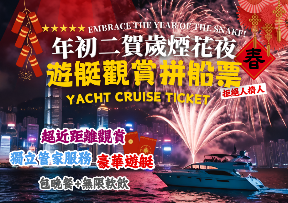🎆 必搶 1:初二賀歲煙花遊艇 (每位 $688 起)